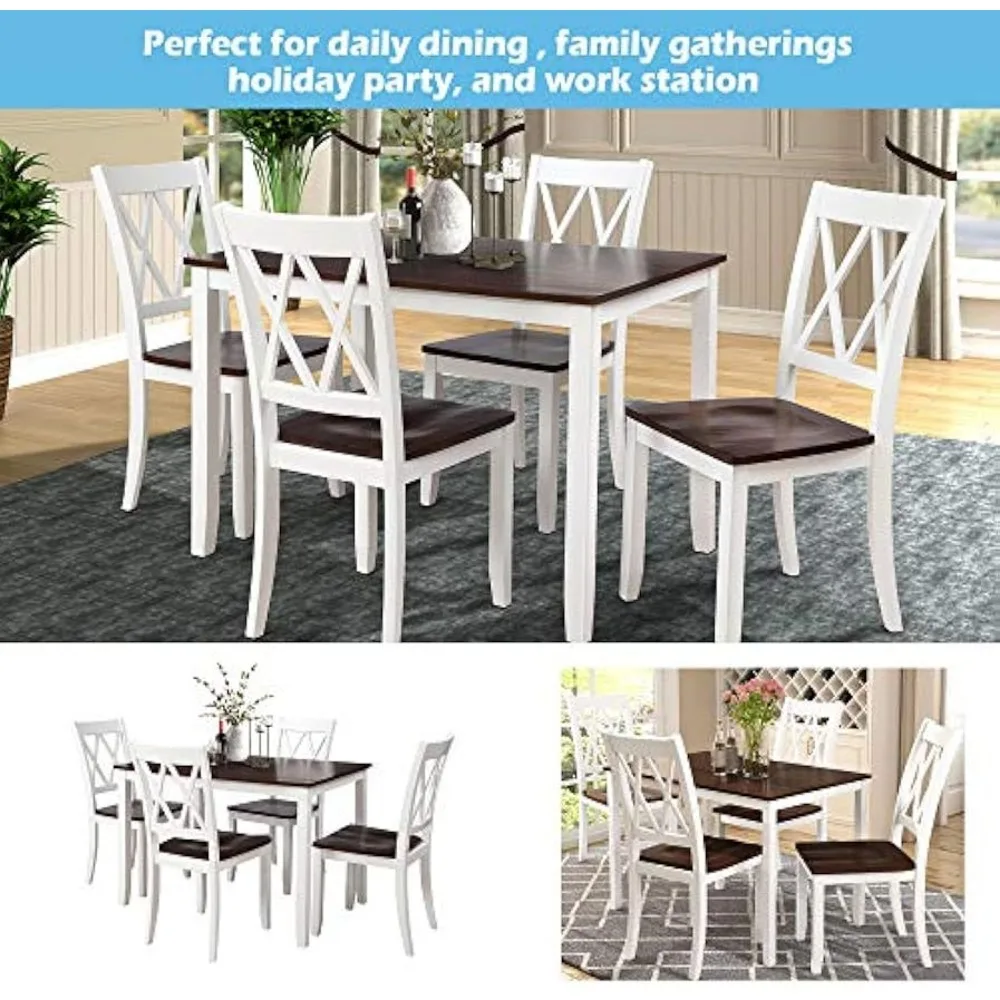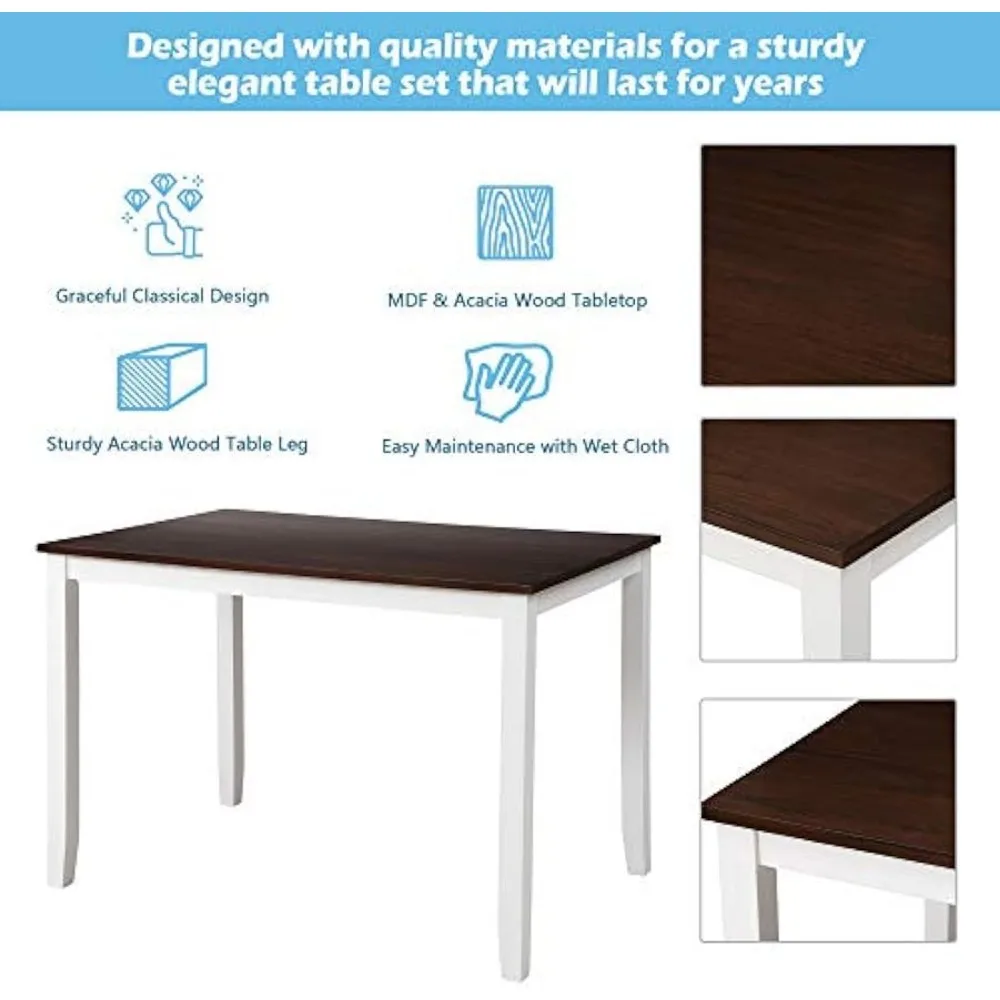 【5 Pcs Dining Set】Designed with modern home styling, featuring cherry veneer against an ivory painted frame to add a feeling of elegance. The simplistic silhouette makes it easy to match with any decor style.
