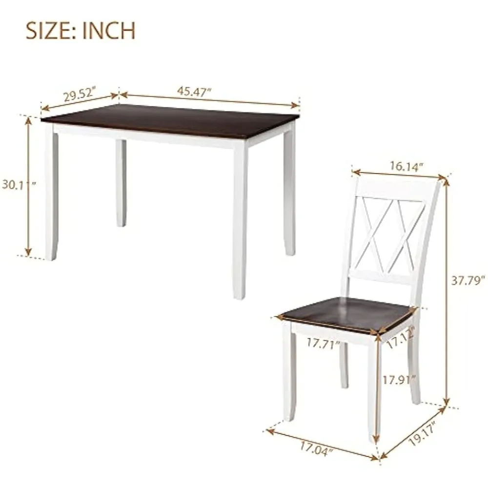 【Assembly】Some easy assembly required. Dimensions: Dining table–45.47” x 29.52” x 30.1” (L x W x H). Dining Chair– 17.04” x 19.17” x 37.79” (L x W x H). Table weight capacity: 300lbs; Single chair weight capacity: 200 lbs.